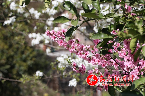 桃紅梨白春光美