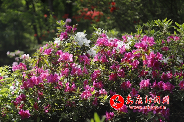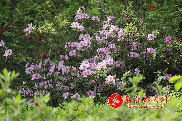 近日,嵐皋縣巴山珍稀植物園杜鵑花陸續盛開,紅的、粉的、白的、黃的、淡紫、絳紫各種顏色,映染了山林。風中搖曳的杜鵑,似團團升騰的火焰,又如層層疊疊的緋色煙霞,它們以最熾烈的姿態回應著春天的邀約。(通訊員 廖霖) pEr安康新聞網