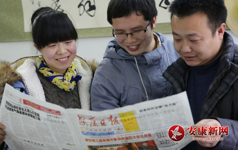 干部職工通過閱讀《安康日報》了解兩會的消息。