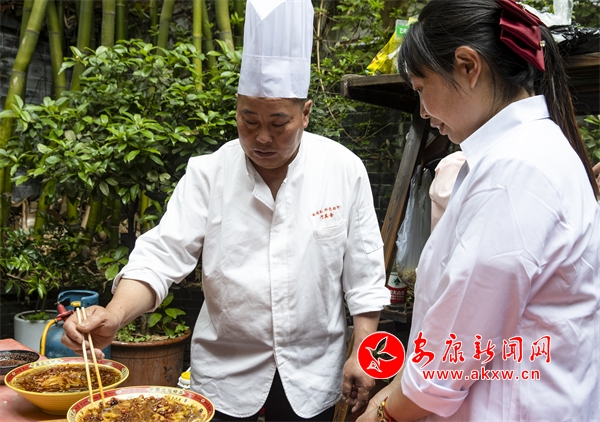 但隨著時代的發展,人們消費理念的更新,能制作傳統白河“三點水”宴席的人越來越少,偌大一個縣,找不出幾個能夠獨當一面制作傳統宴席白河“三點水”的廚師。所以他毅然決定辭去高薪的主廚工作,奔走于鄉村,上門做家政服務,在實地操作技藝中傳幫帶一批會制作白河“三點水”宴席的鄉廚。