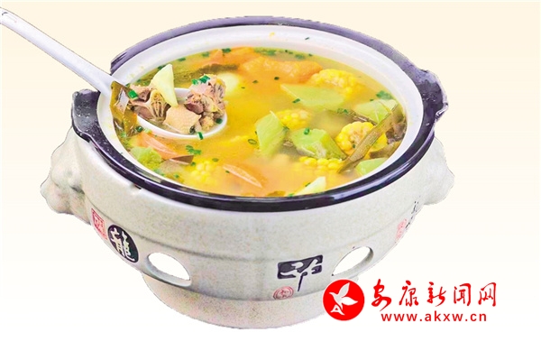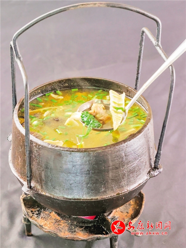 漢陰縣城關鑫遙農莊——白火石汆湯陜西省非物質文化遺產之一,中國最古老的烹飪菜肴中的“活化石”。將白石脂燒紅后汆入湯中,用石頭的熱量將食材激熟……