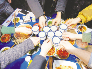 安康新聞網訊(記者 吳單 潘潤生 )搪瓷碗吃飯、搪瓷盤子盛菜、搪瓷缸喝酒、鋼筋鍋煮串串,不禁讓人想起八九十年代老城麻辣燙。木桌椅、木門窗、公用電話亭、江南……