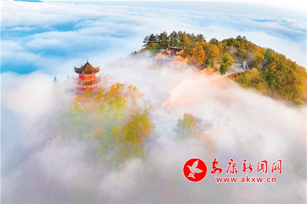 早晨的第一縷陽光灑向山頭,蔥郁油潤,五彩斑斕,山的影子投向漢江上空的云海,一直延伸到對面若隱若現(xiàn)的遠(yuǎn)山。隨著太陽的升起,山與影的夾角漸漸變大,山的影子也隨之漸漸變短。那茫茫云海在晨光的照耀下,翻騰的速度也隨溫度上升而加快起來,慢慢地被太陽撕成大塊“棉團(tuán)”,爾后成為走散的“羊群”,直至瀛湖山水清晰地露出真容,云海和太陽才算徹底撇清關(guān)系。記得那是2019年10月下旬的一個(gè)清晨,我看準(zhǔn)時(shí)機(jī)后,趕緊升起無人機(jī),找準(zhǔn)最佳位置,記錄下這稍縱即逝的美景,這也是我在天柱山看到的最為壯觀的景象了。
