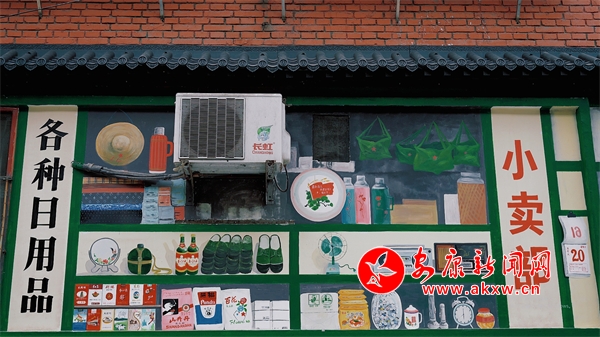 一支畫筆,一面白墻,一墻一風景,一墻一文化,不經意間,某個轉角就能與斑斕的墻繪撞個滿懷。漫步在漢濱區老城街道大北街,色彩斑斕的街道給這座城市的街巷生活增添了一絲色彩和靈魂。上世紀六七十年代的小賣部、照相館、電影院、二八大杠自行車等元素……一幅幅充滿鄉愁記憶的彩繪,讓冰冷的街道逐漸生動活潑起來。(通訊員 張敏 張媛)zEP安康新聞網