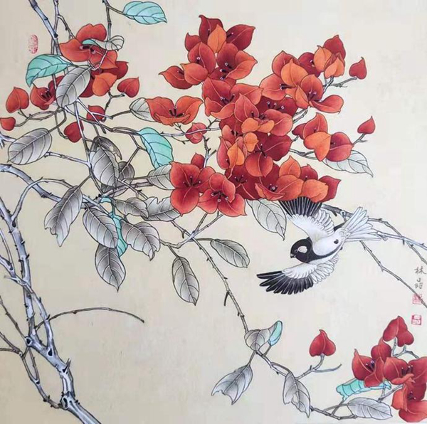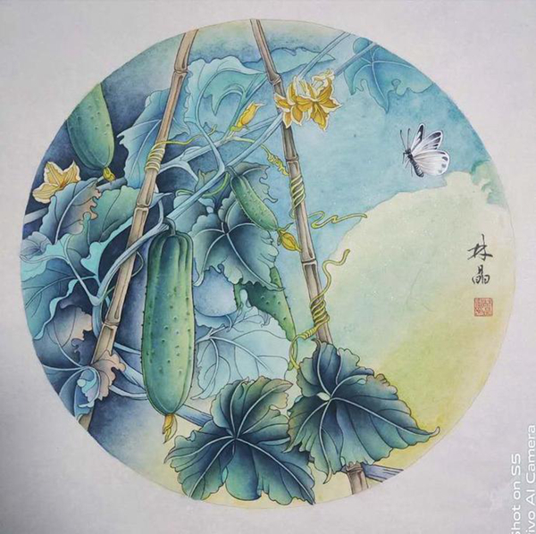 簡而言之,林晶女畫家的工筆花鳥畫,無論在構(gòu)圖上、線條上、設(shè)色上都彰顯出自己的“功夫”。她的每一幅畫,都那樣艷而不俗、淡而有味,讓人有百看不厭的舒暢感。