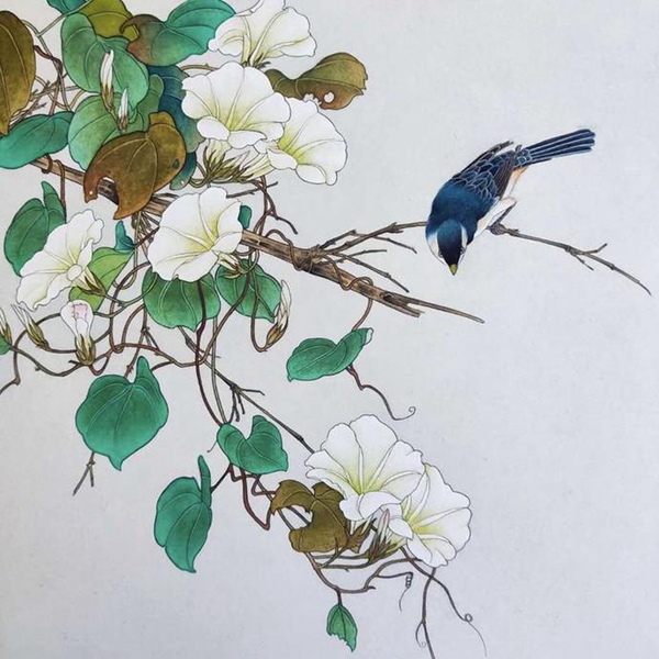 在墨介藝術(shù)領(lǐng)域,林晶沉醉于工筆的花鳥畫,執(zhí)著追求而不知疲倦,奮斗自己繪畫夢想。品讀女畫家林晶的工筆花鳥畫作,是一種心靈的感悟。他的畫既吸收了古人嚴謹工細的用筆,又結(jié)合現(xiàn)代的隱線勾勒與層層暈染,體現(xiàn)出一種古雅清秀的印跡。