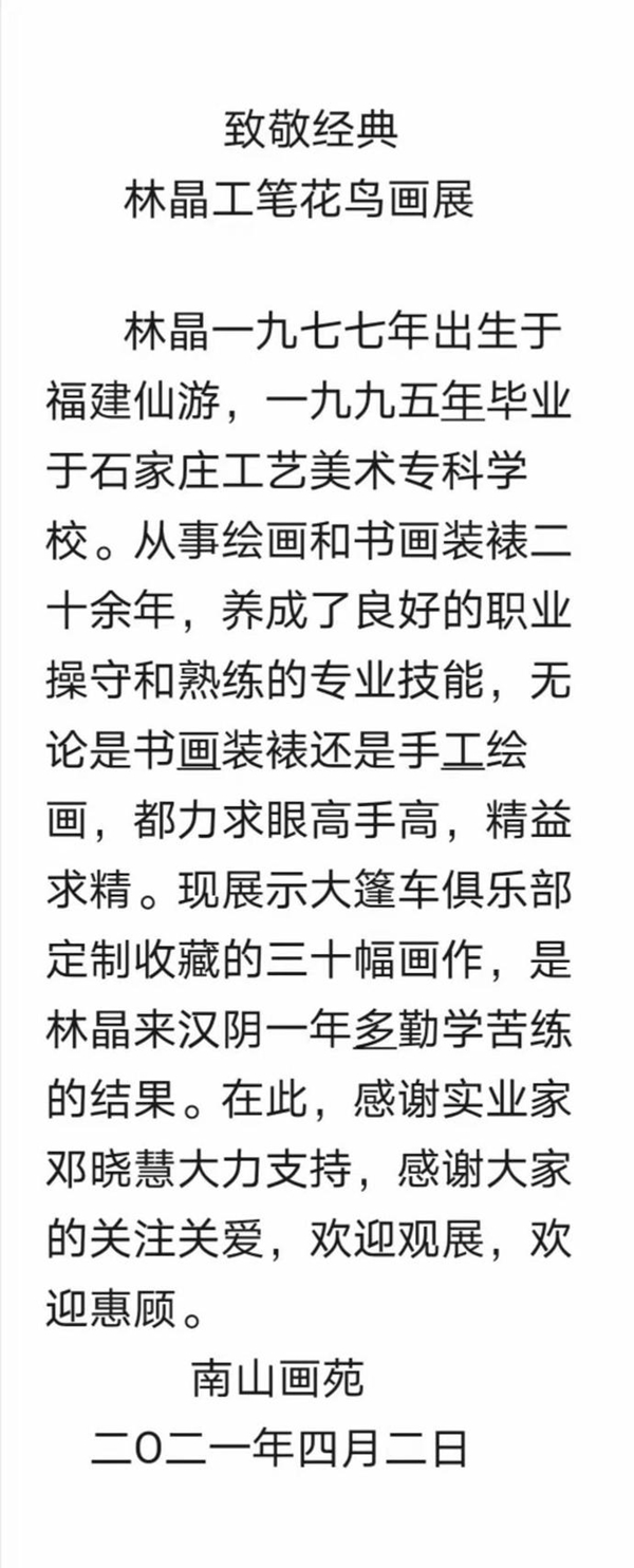 看現(xiàn)在林晶的繪畫,工筆花鳥畫可以說達到了惟肖惟妙,而且還有自己獨具的氣質(zhì)內(nèi)涵。她的工筆花鳥畫,已經(jīng)是掌握了精湛的傳統(tǒng)技法,諸如布局、章法、線描,以及對留白的把控等,都是很到位的。而且她還將個人審美觀融了進去,尤其是秦巴漢水的文人意趣體現(xiàn),更有自己的色彩感覺,而其表現(xiàn)核心仍是傳統(tǒng)的藝術(shù)審美觀。