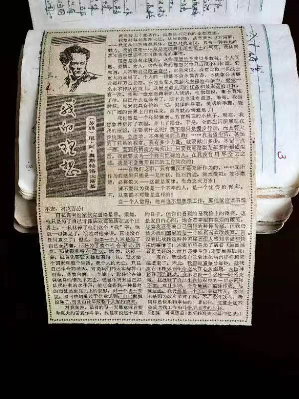 在新兵連我便開始記學(xué)習(xí)筆記,剪貼報紙上的重要文獻。一次在蘭州軍區(qū)《人民軍隊報》看到(蘇聯(lián))尼·阿·奧斯特洛夫斯基《我的理想》,我一口氣看了好幾遍,并剪下來貼在日記本上,有空就翻著看,把經(jīng)典的部分標(biāo)注起來。這在當(dāng)時“人活著到底為了什么?”“年輕人有什么樣的理想?”“青春怎樣才能放射耀眼的光芒?”“什么是真正的幸福?”大討論中,無疑是最好的學(xué)習(xí)教材。